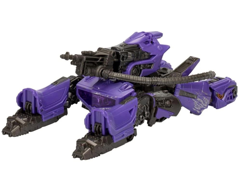 Перед вами Шоквейв Studio Series 110 — точная фигурка Десептикона из фильма «Трансформеры: Бамблби». 16,5-сантиметровый робот превращается в кибертронский танк за 22 шага. В комплекте пушка и съёмный бэкдроп Cybertron Falls — всё для съёмок сцен и коллекции прямо из коробки.