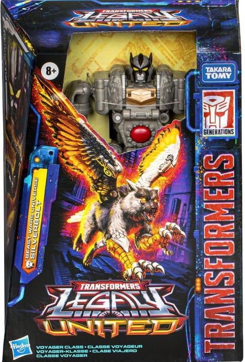 Перед вами Сильверболт — Вояджер-класс из серии Legacy United. 18-сантиметровый робот, который за 27 шагов превращается из робота в гибрид волка и орла. Точный образ героя «Битвы зверей» с высокой детализацией и полным набором аксессуаров для динамичной игры и коллекции.
