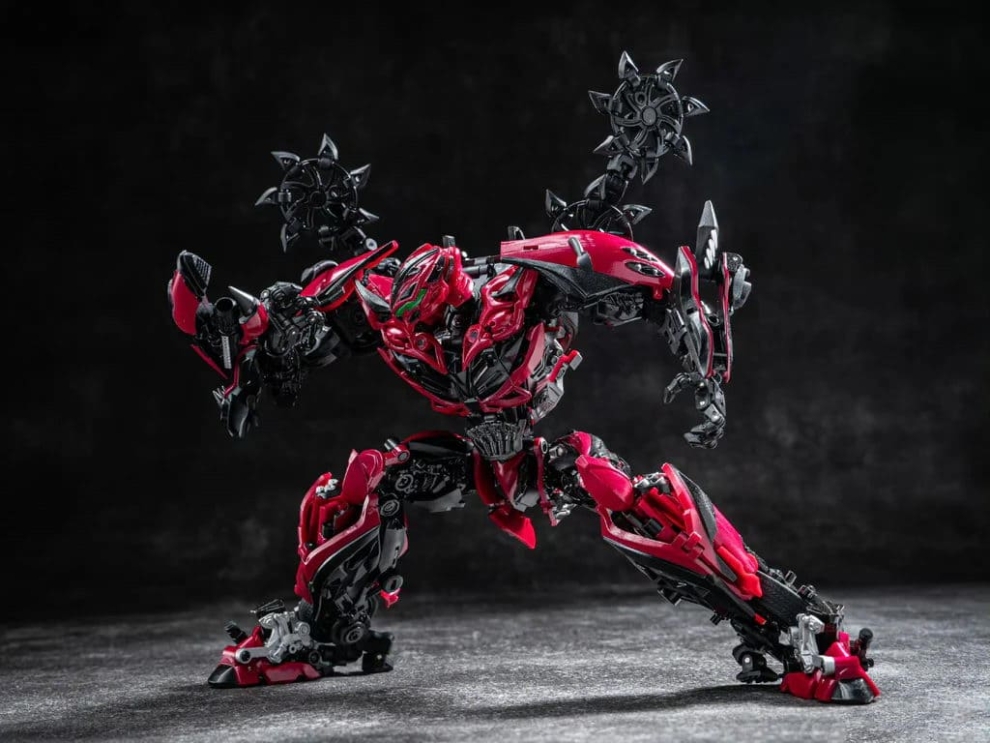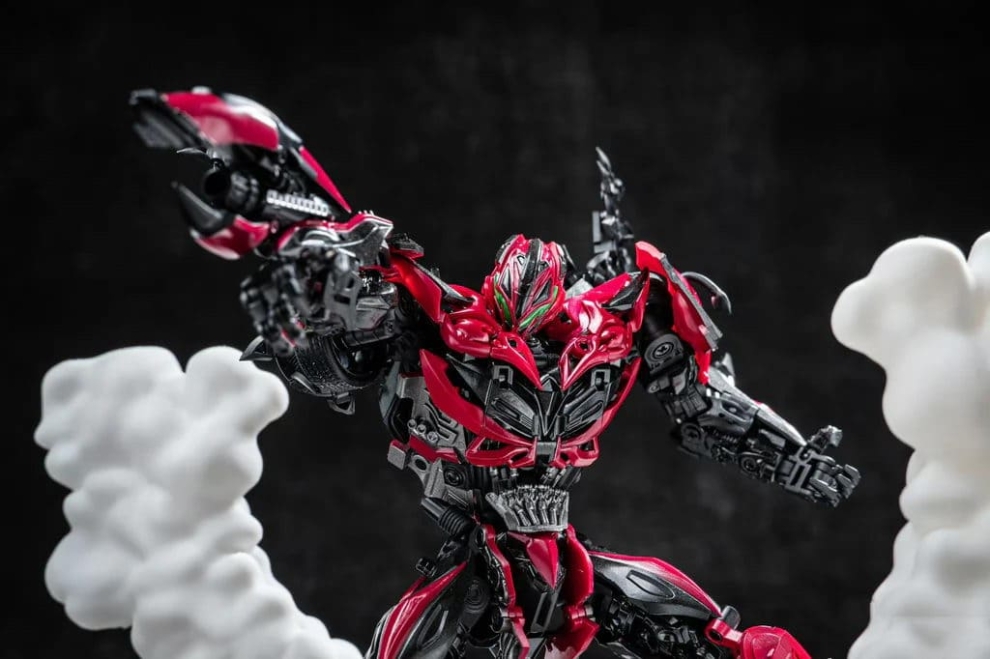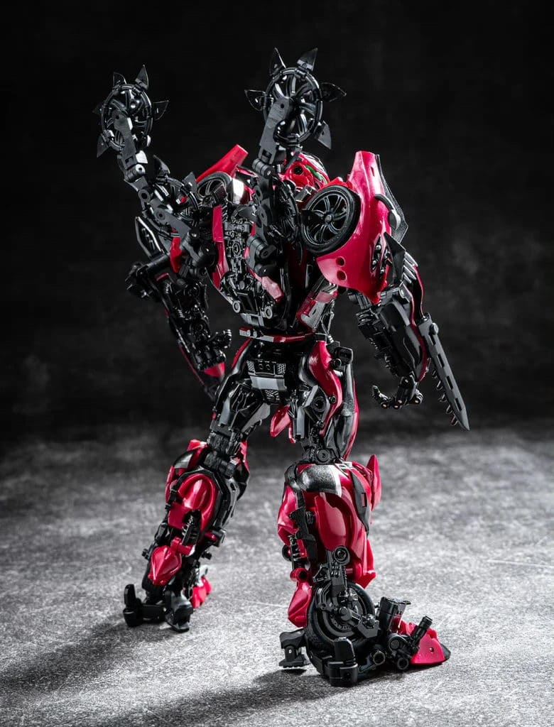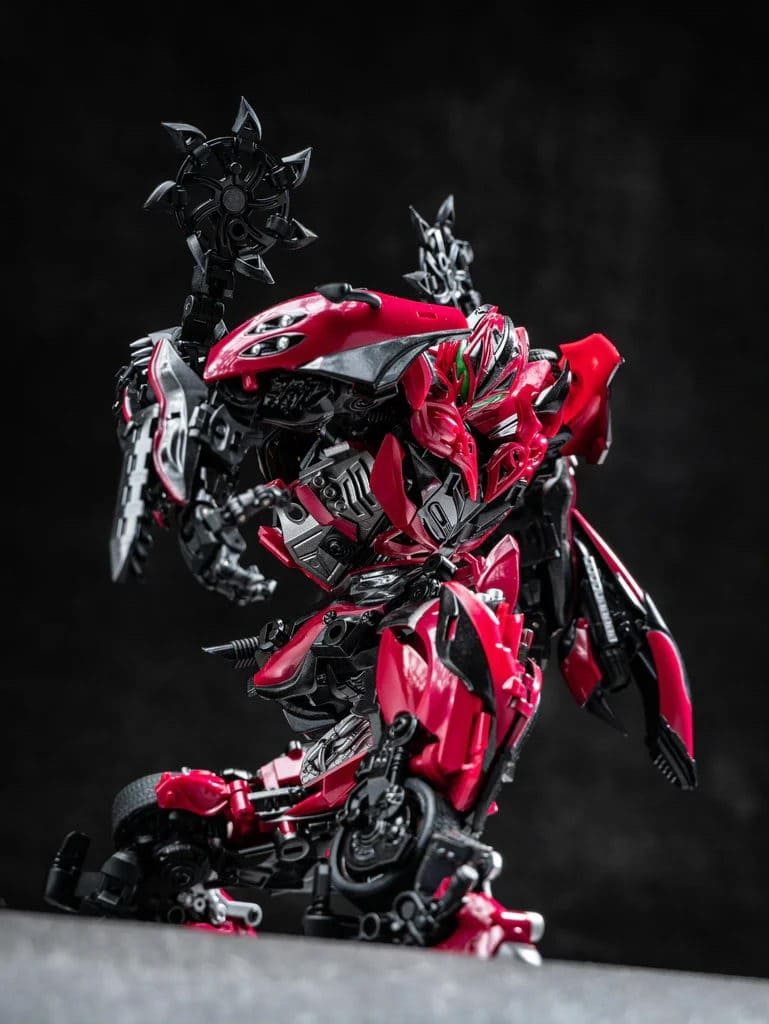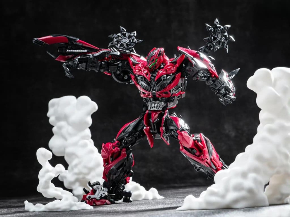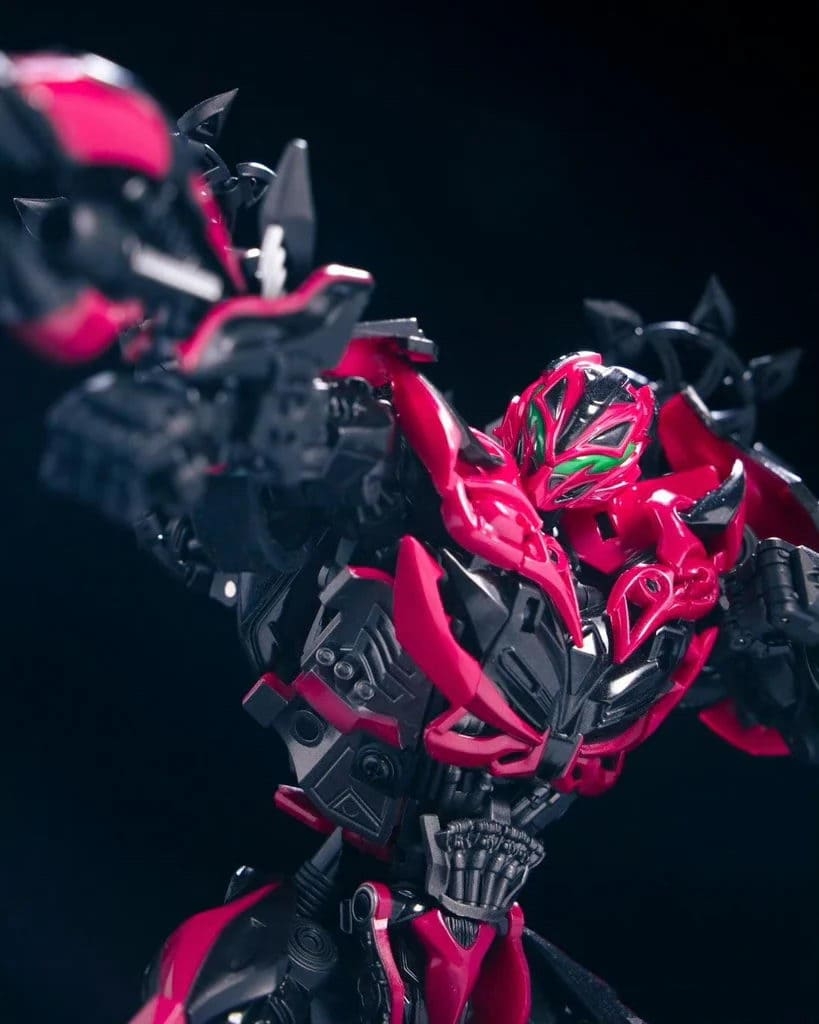 Перед вами Unique Toys R-09 Red Destroyer — мастерпис-уровень Стингера из фильма «Эпоха истребления». 20–21-сантиметровая фигурка превращается в красный гоночный автомобиль с вооружением. Высокая детализация, die-cast и сложная трансформация для коллекционеров Bayverse.