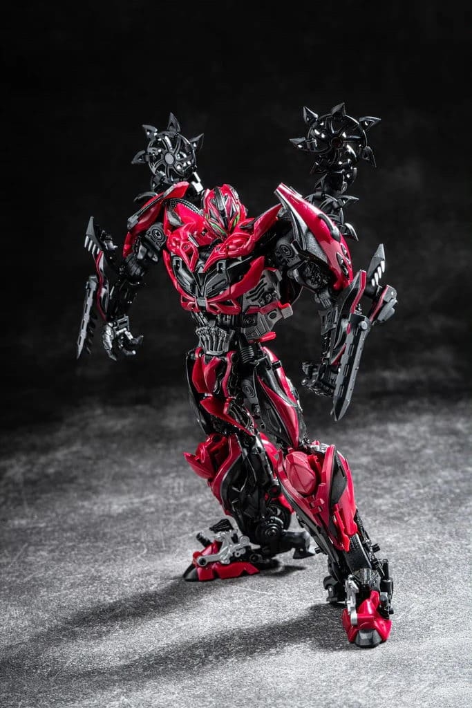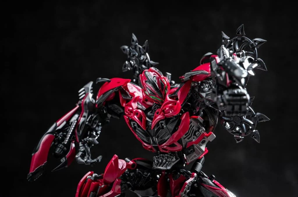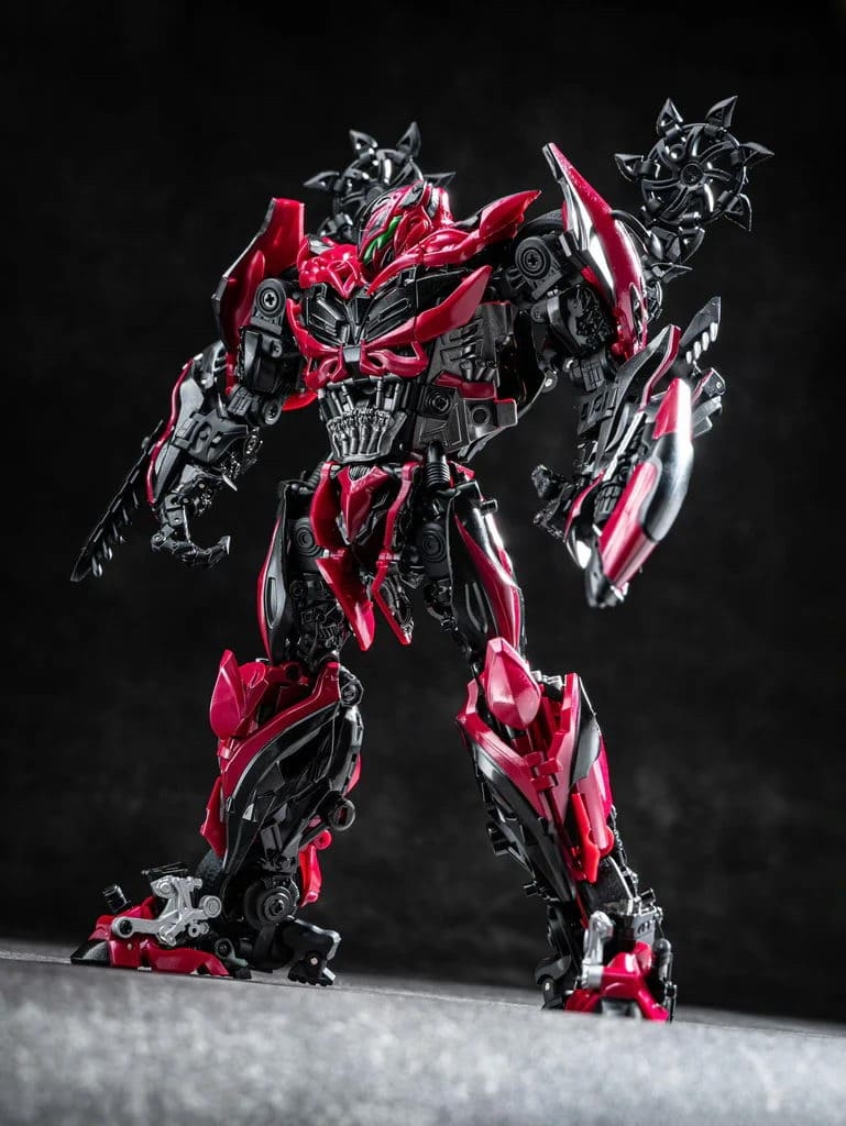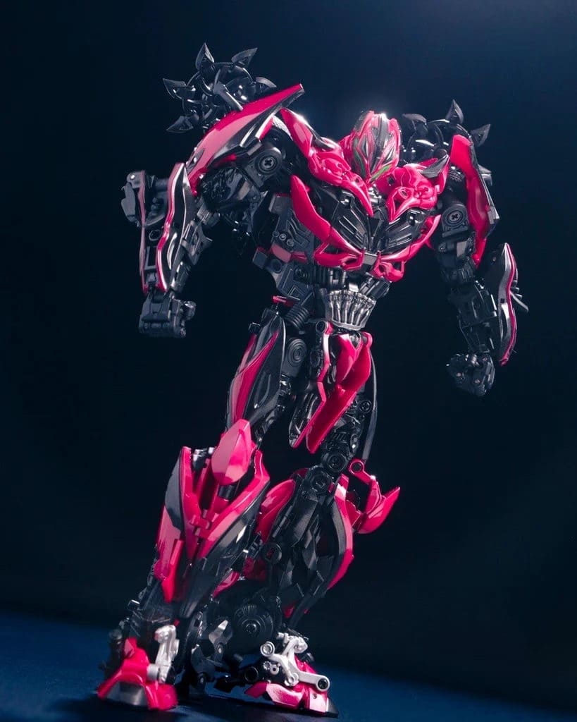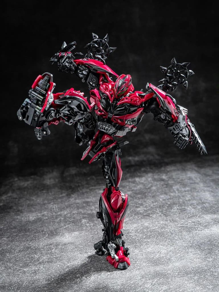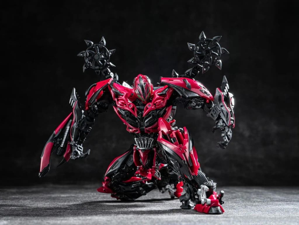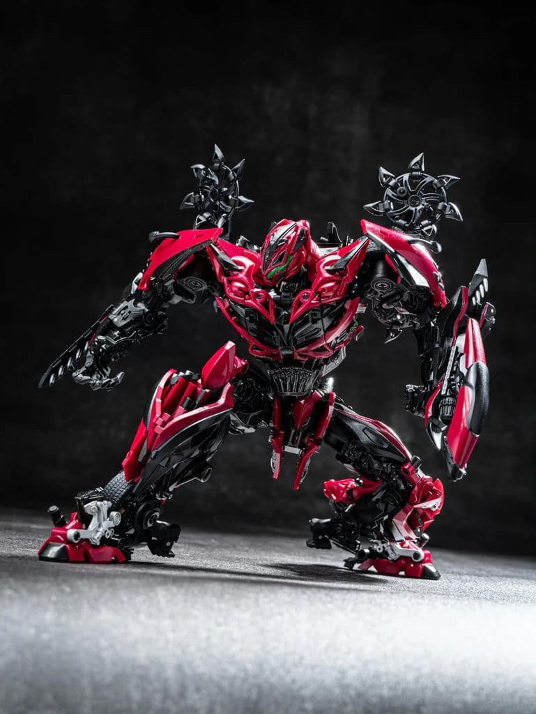 Перед вами Unique Toys R-09 Red Destroyer — мастерпис-уровень Стингера из фильма «Эпоха истребления». 20–21-сантиметровая фигурка превращается в красный гоночный автомобиль с вооружением. Высокая детализация, die-cast и сложная трансформация для коллекционеров Bayverse.